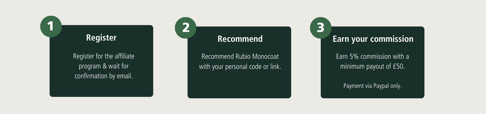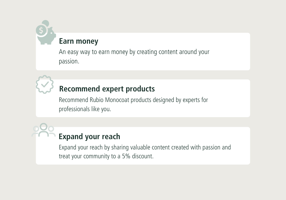 Your code can also be used by your foreign followers on their country's official Rubio Monocoat webshop.