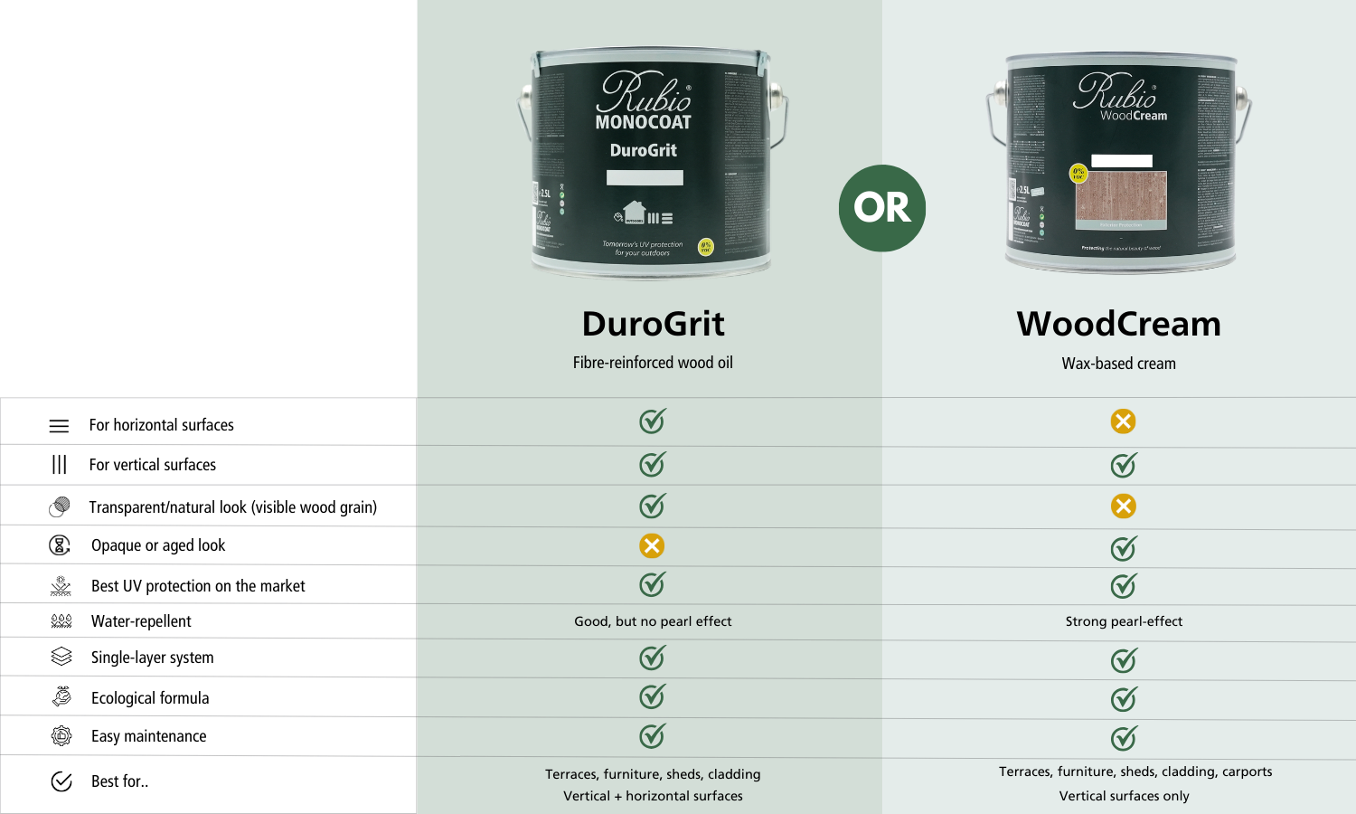 *Disclaimer: durability depends on the orientation of the wooden surface, the amount of sun exposure and environmental circumstances. Optimal durability can only be obtained by following the maintenance instructions provided in our warranty document.