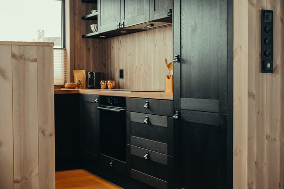 A cabin in Hemsedal was being set up with a focus on natural materials and a love for nature. The design included a kitchen made from solid wood. To complement the cabin's paneled walls and existing wood textures, a more substantial and covering colour was desired for the kitchen. The solution involved applying a pre-colour treatment to achieve a deeper and more uniform colour. The result was a beautifully finished kitchen that enhanced the cabin’s natural aesthetic.